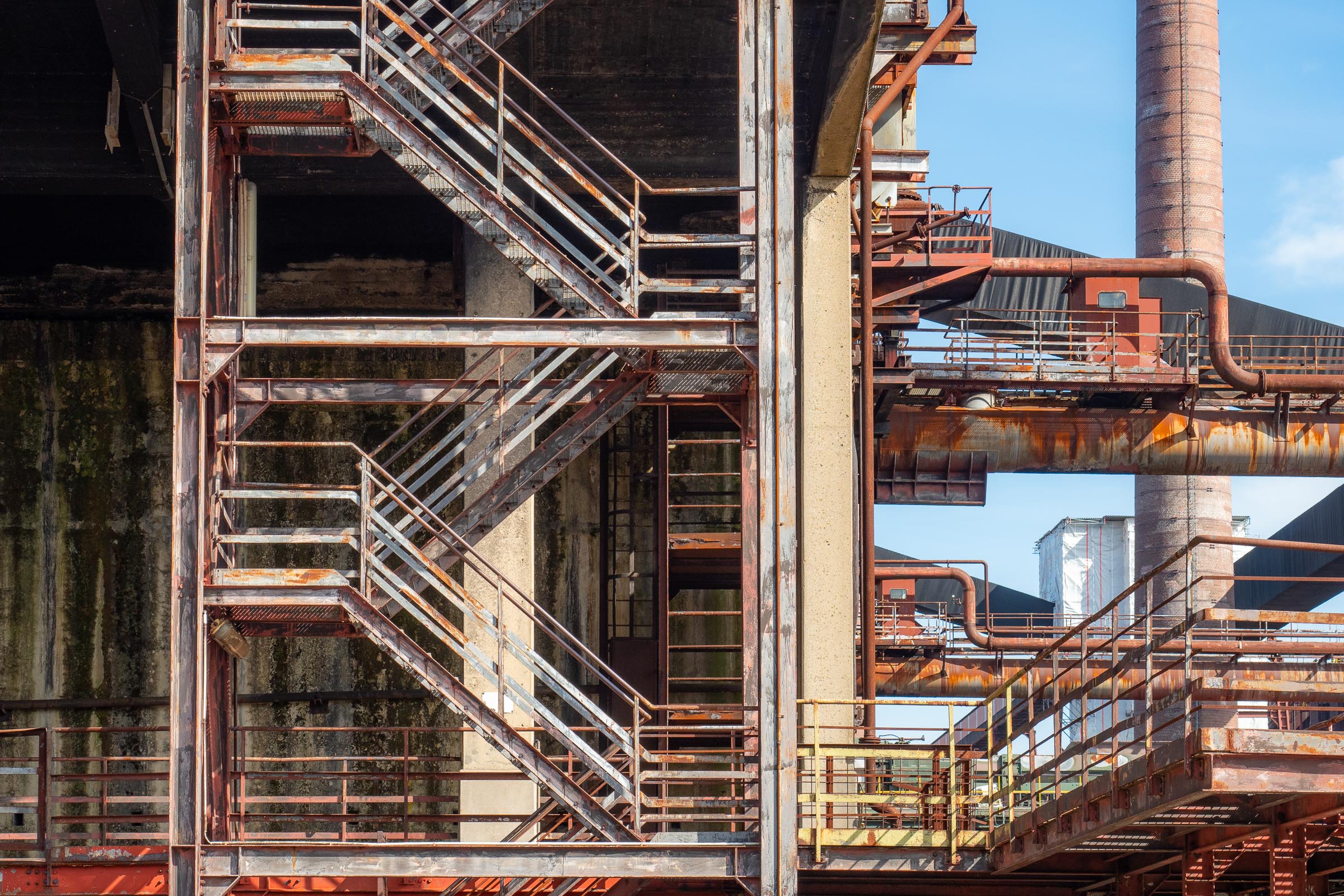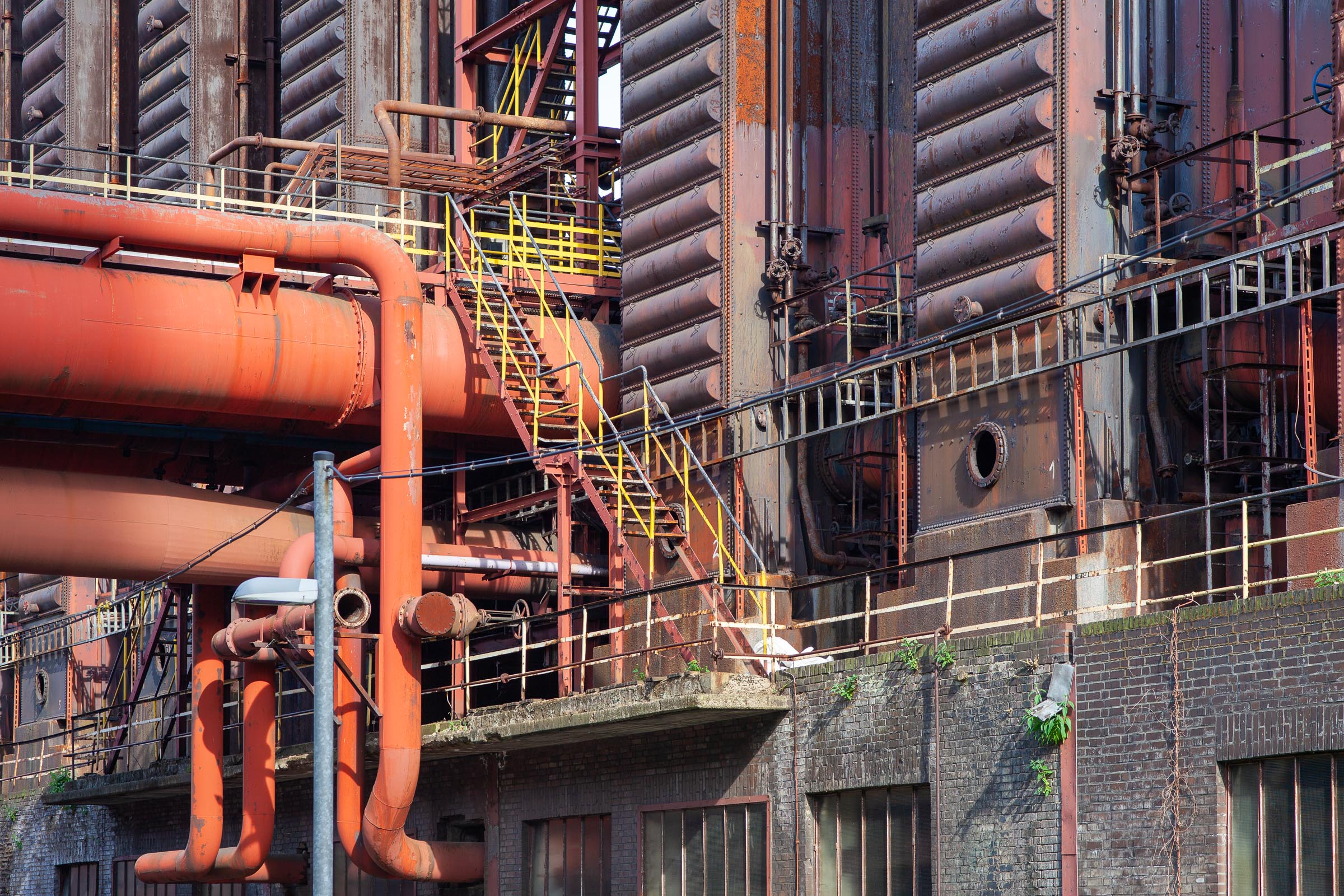 Die Zeche Zollverein in Essen begeistert mich seit Jahren. Immer wieder schaue ich hier vorbei. Für jemanden wie mich, der sich mit Kokereien und Stalwerken nicht auskennt, stellen die rostigen Gebilde abstrakte künstlerische Formen dar, die nur darauf warten, in Szene gesetzt zu werden.