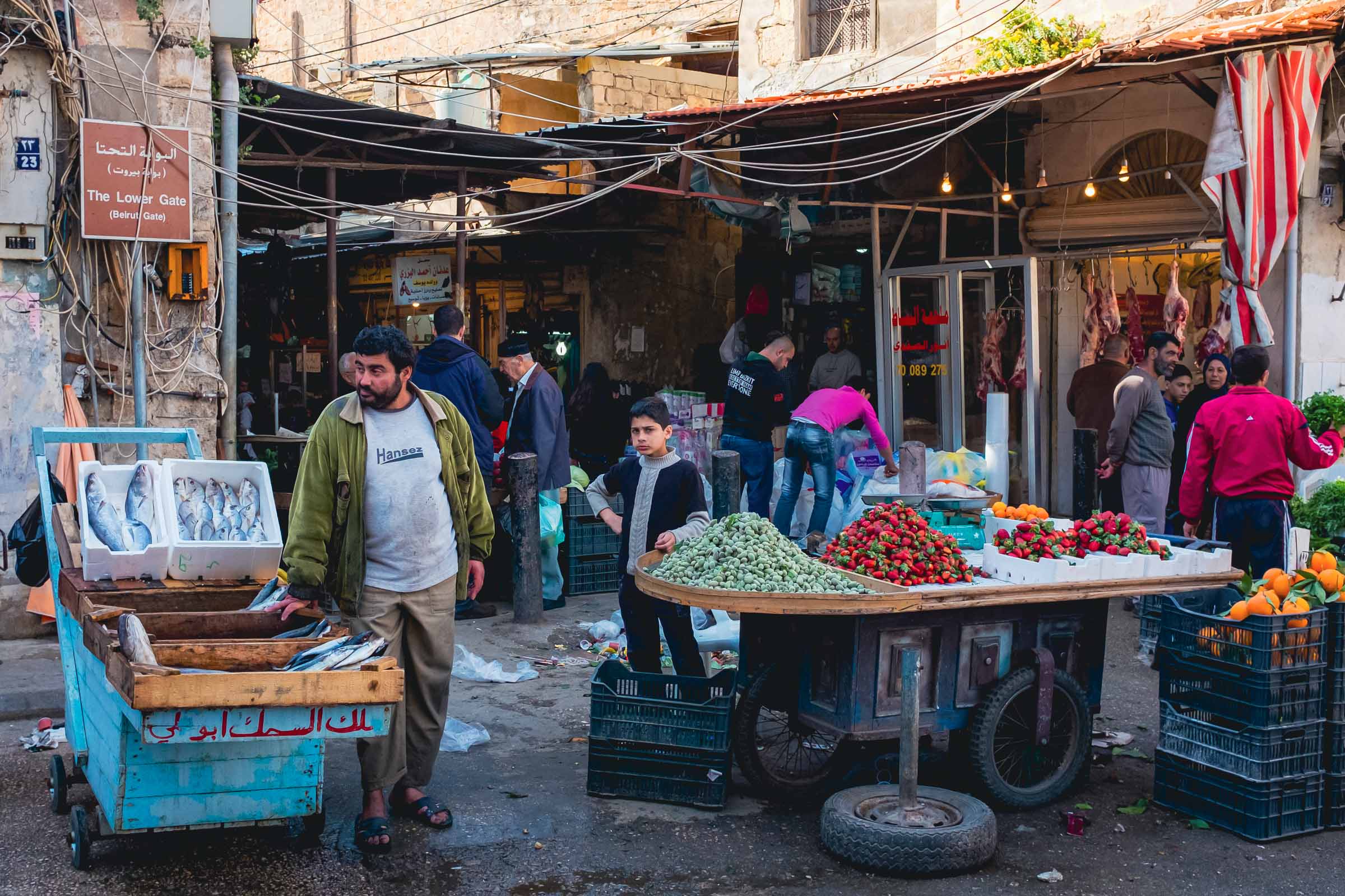 In den Straßen rund um die Souks von Sidon finden sich noch viel mehr Marktstände und Geschäfte. Alles ist voller Menschen, Geräusche und Gerüche.