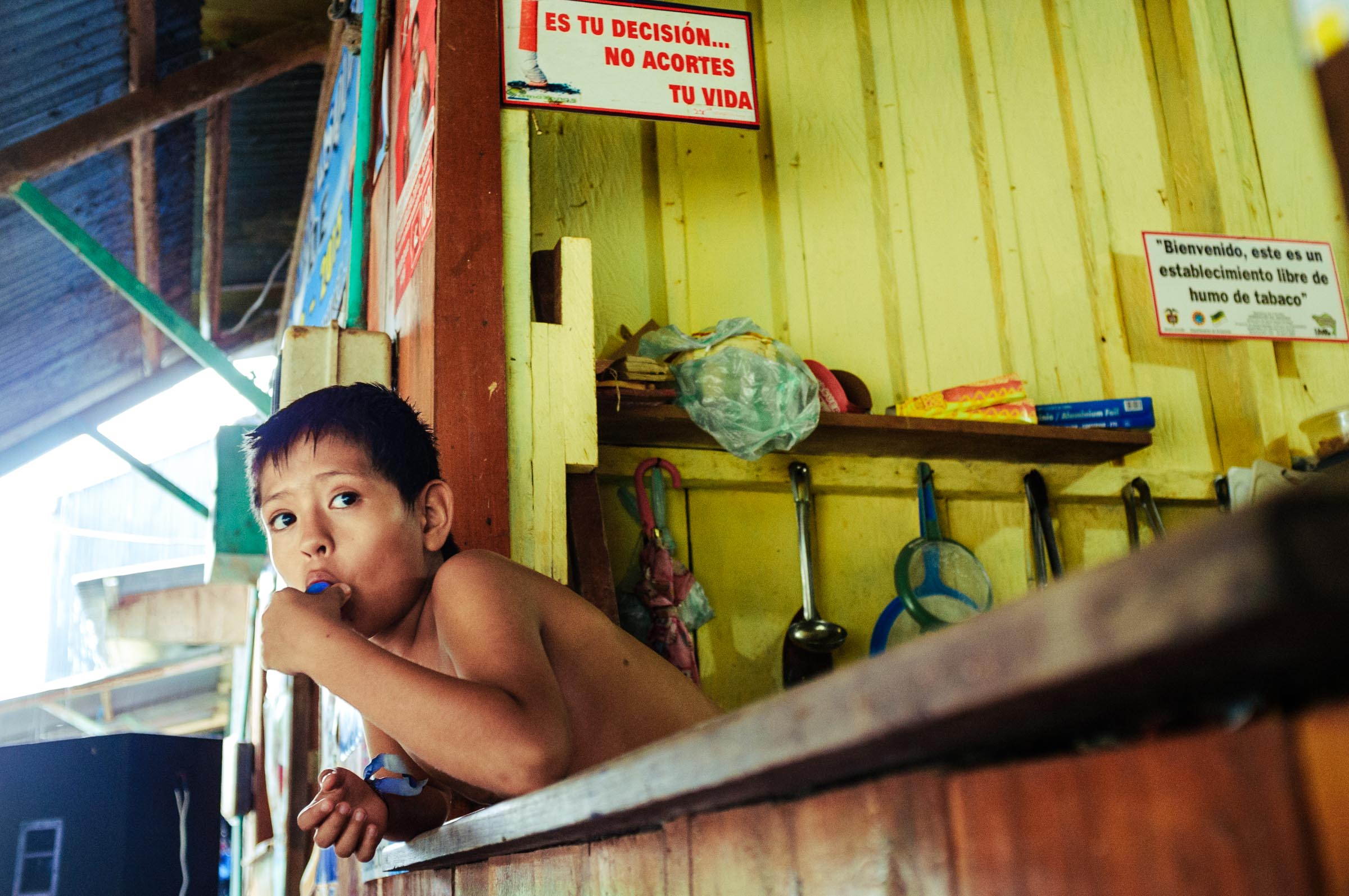 Im November 2011 habe ich das kleine Dschungel-Dörfchen Puerto Nariño entdeckt. Es liegt im südwestlichen Zipfel Kolumbiens nahe der Grenzen zu Brasilien und Peru an einem schmalen Seitenarm des Amazonas-Flusses. Man gelangt dorthin am besten von Leticia aus. Die Bootsfahrt den Amazonas hinauf dauert etwa zwei Stunden und geht mehrmals täglich.
