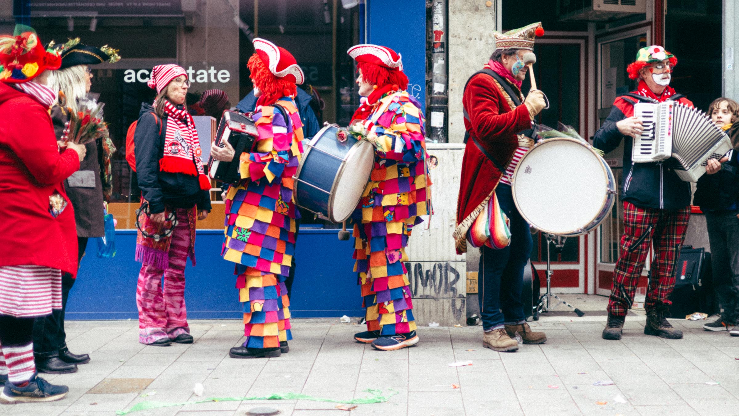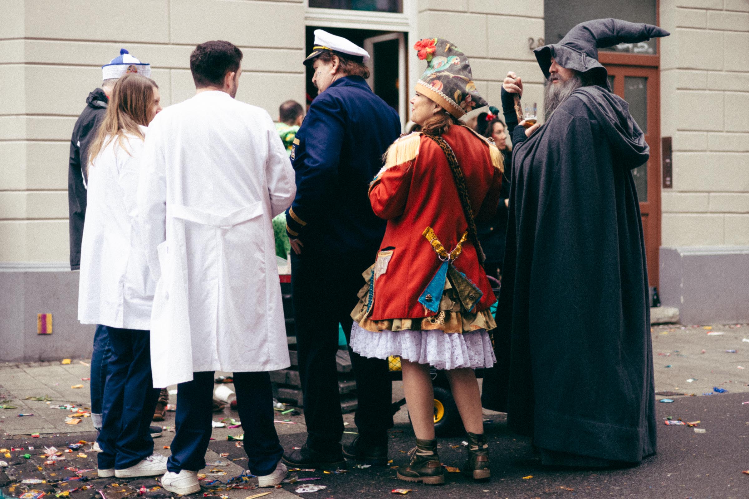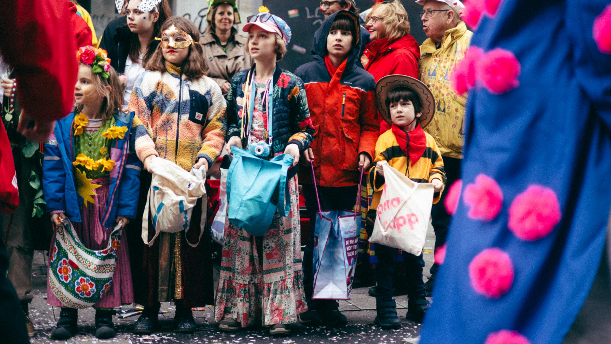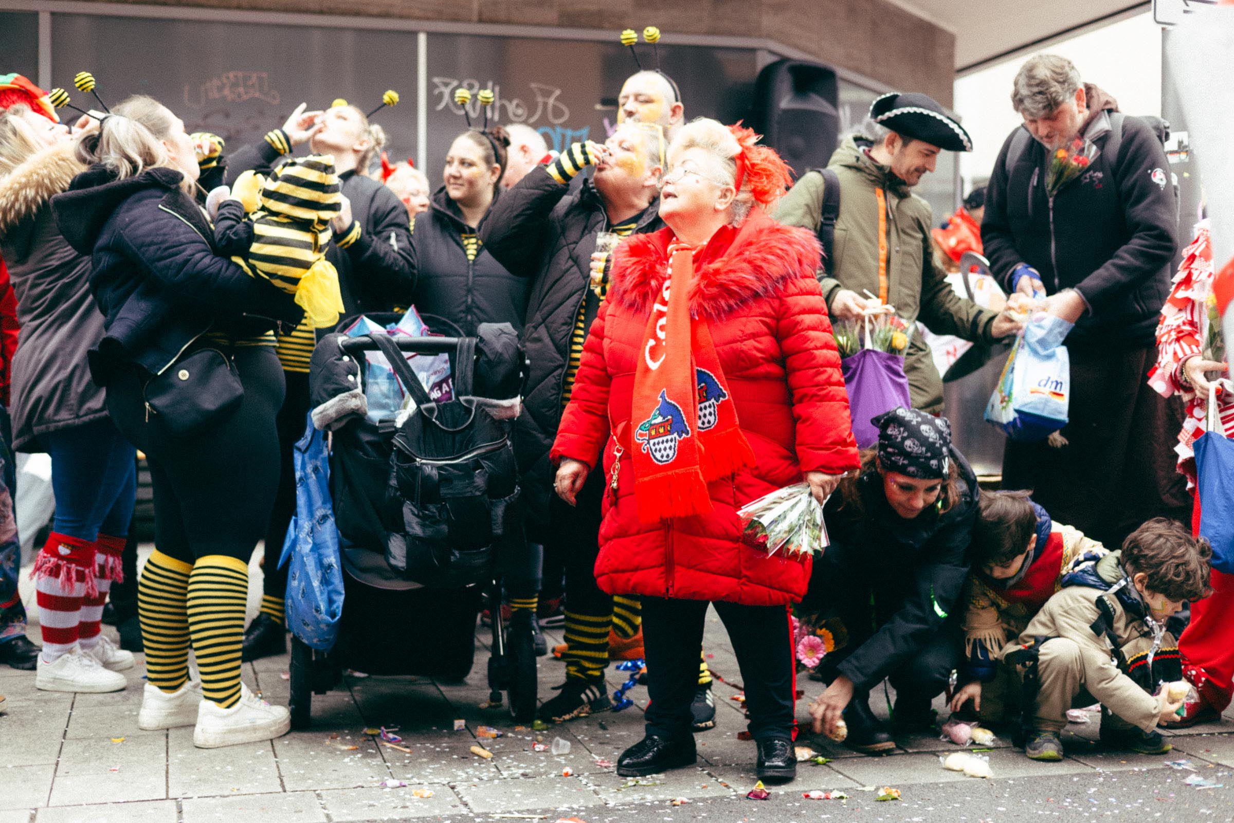 Hier gibt es keine großen Wagen, das Gedränge ist auch weniger stark. Viele Kinder sind dabei. Und damit etwas weniger Alkohol - könnte man zumindest denken. Es ist alles eine ganze Nummer kleiner als beim großen Kölner Rosenmontagszug, aber nicht weniger schön.