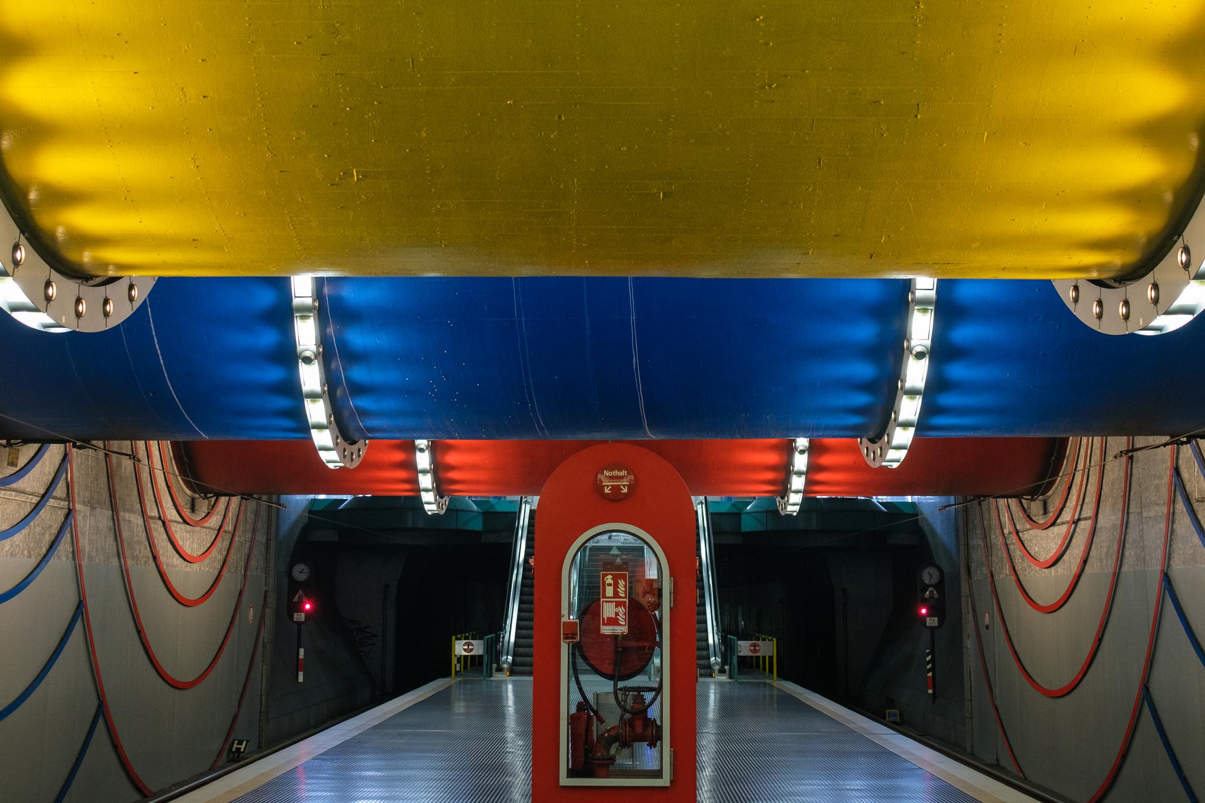 Diese Fotos waren meine ersten, die ich am Beginn der Corona-Pandemie im Jahr 2020 geschossen habe. Die Untergrund-Stationen der Kölner Stadtbahn waren entsprechend menschenleer. Aber weiter gut beleuchtet!