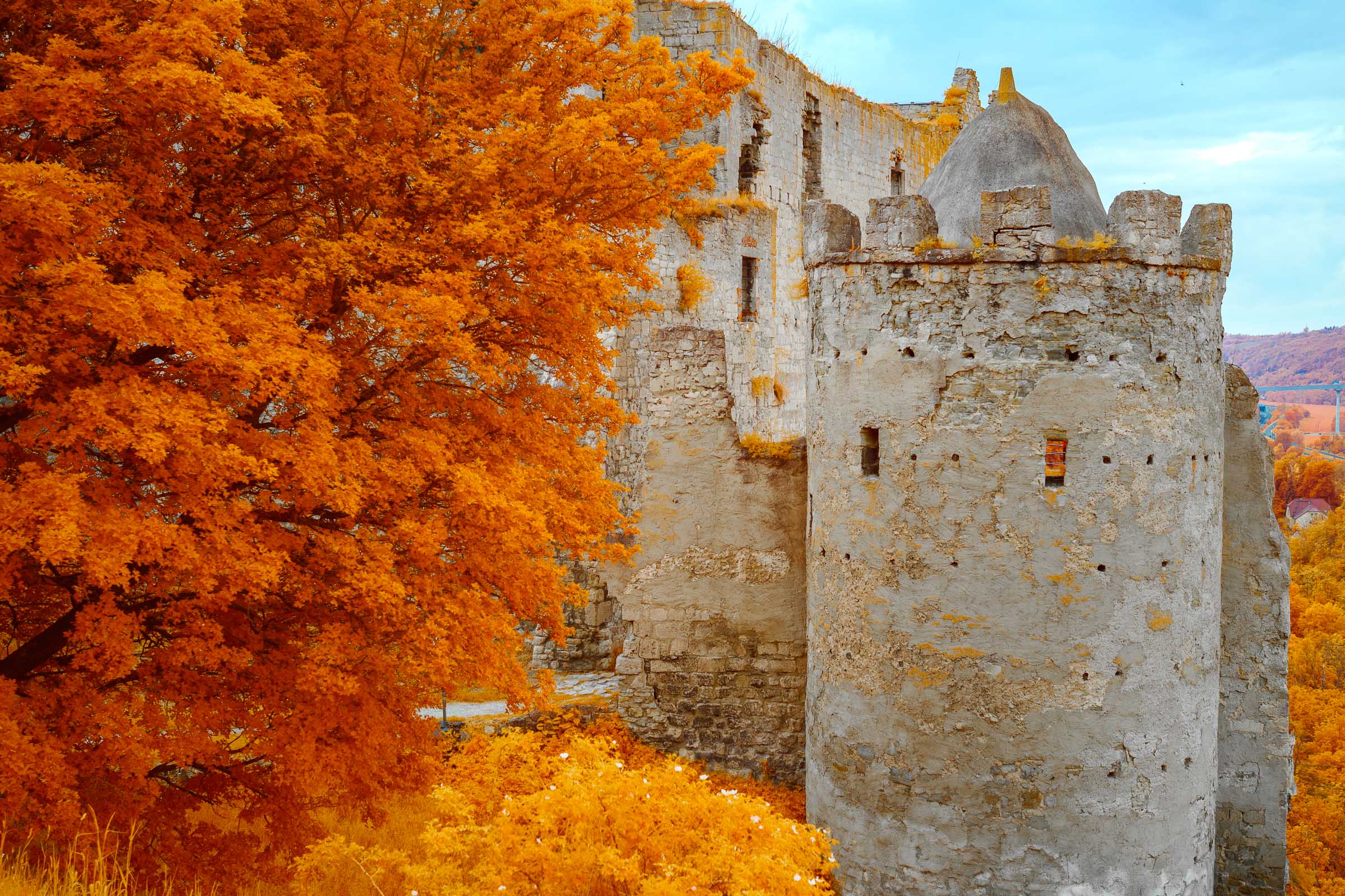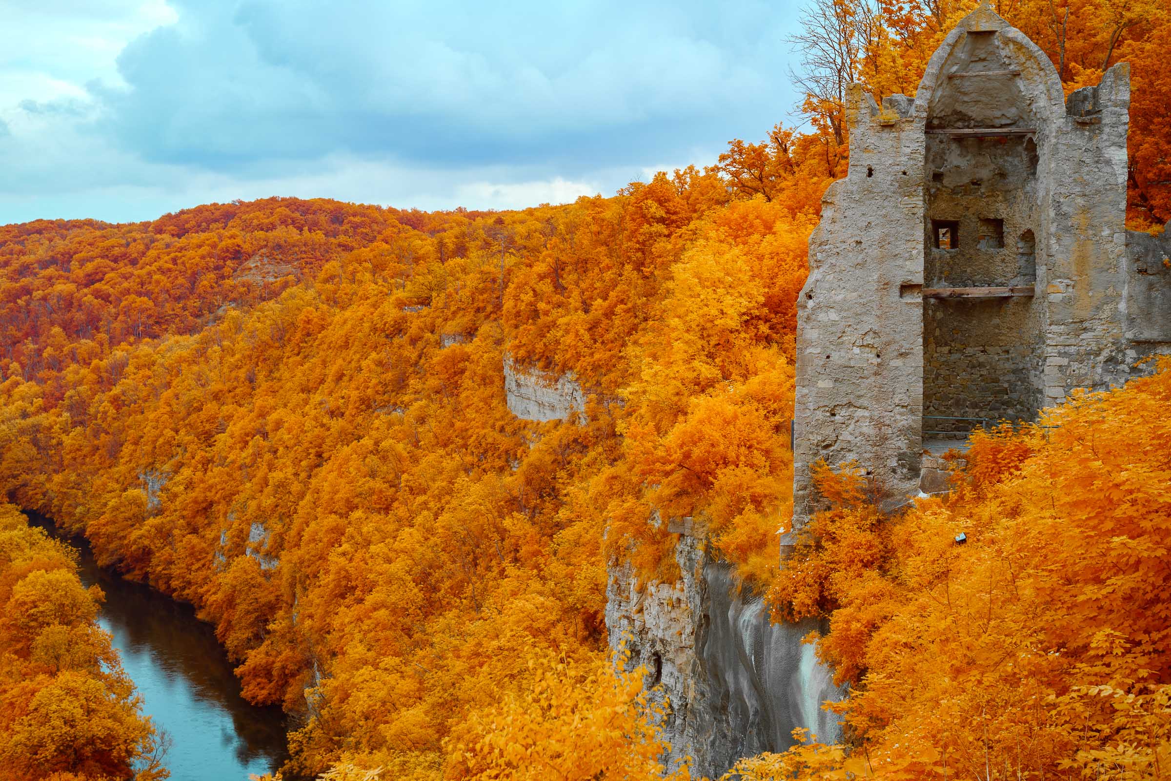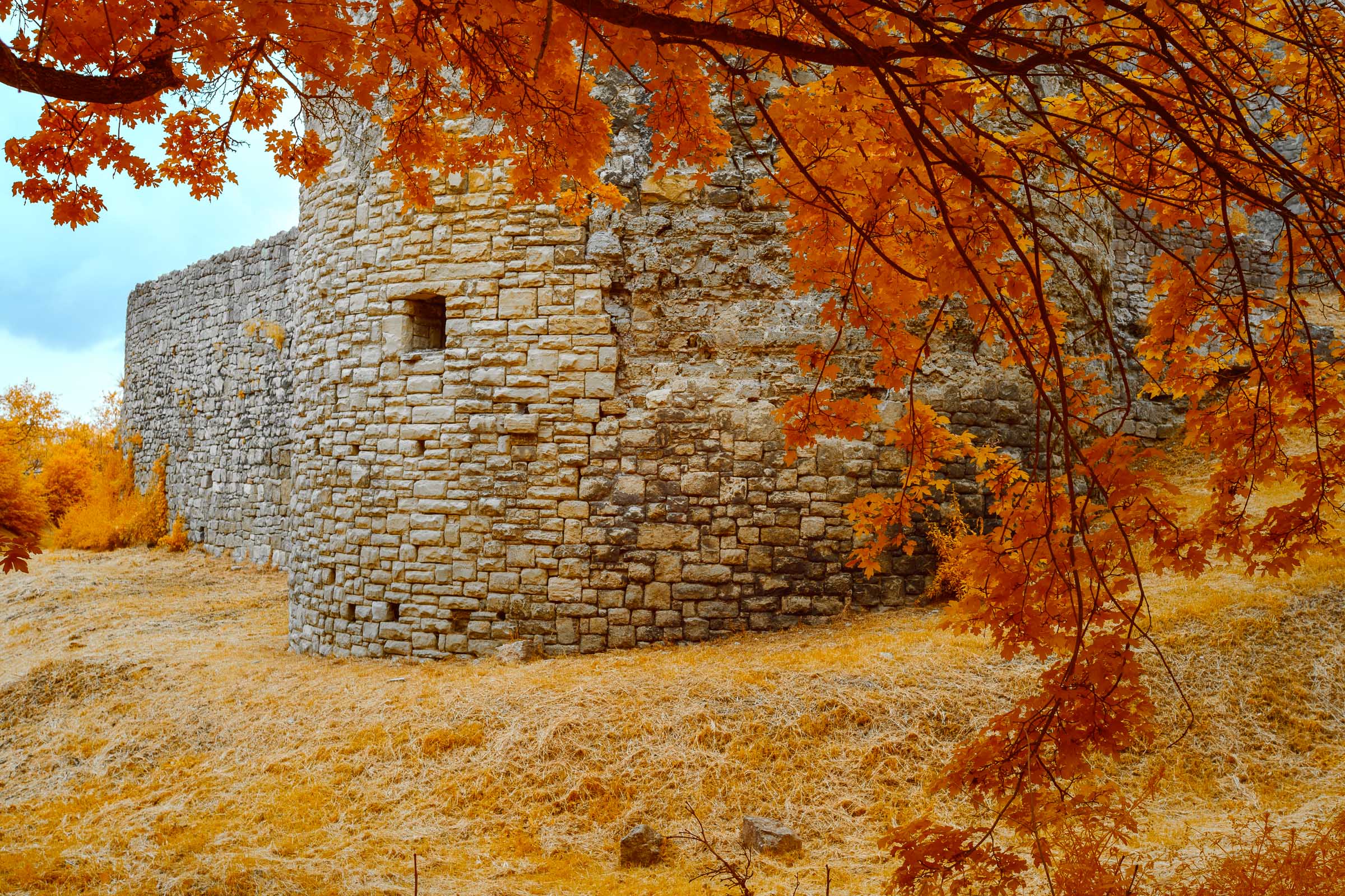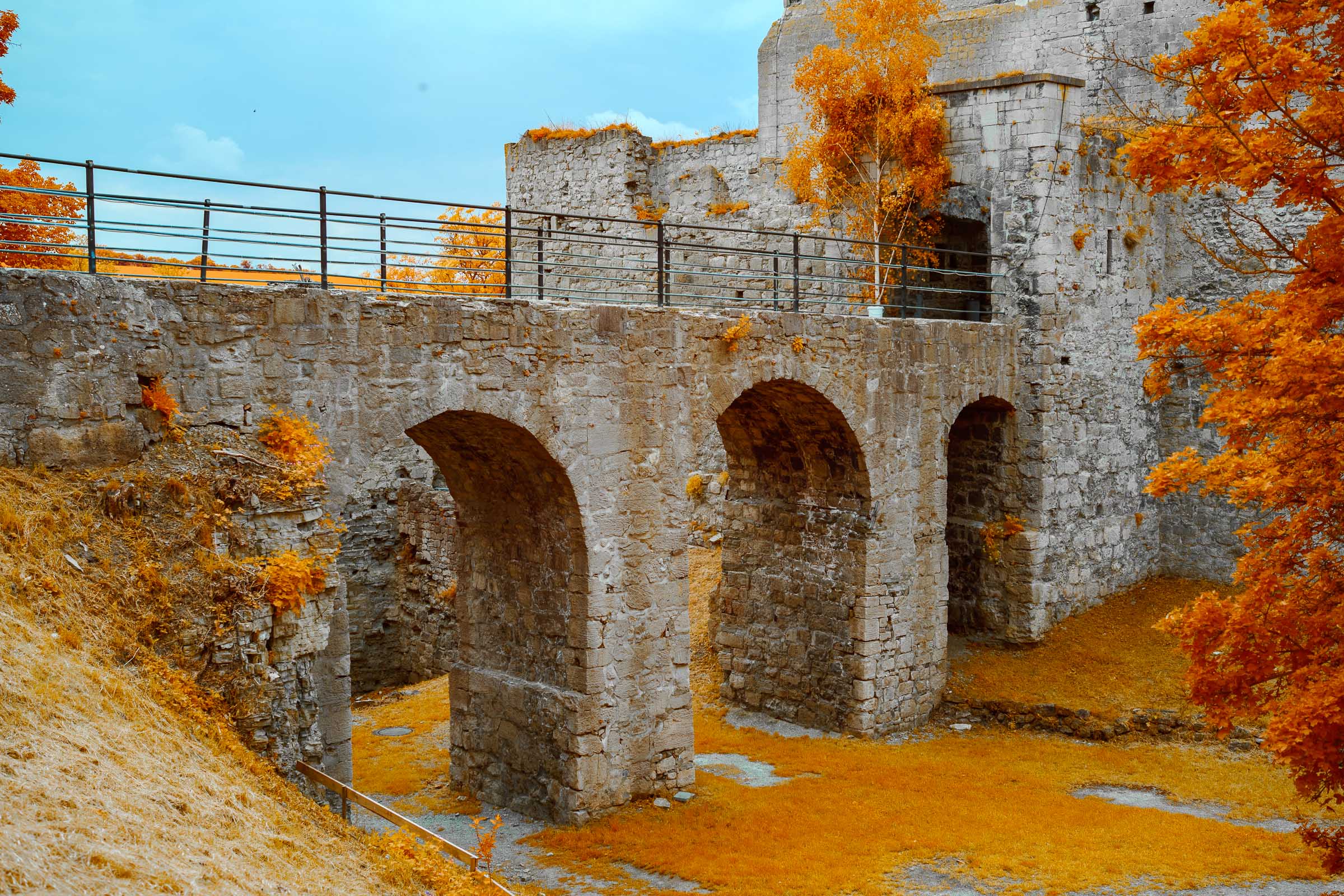 Hier erstrahlt die mittelalterliche Raubritterburg mit Namen Rudelsburg im vollen Infrarot-Glanz. Was im Foto wie ein wunderschöner Herbsttag aussieht, habe ich im Mai des Jahres 2024 mit meiner Infrarot-Kamera und einem Kolari IR Chrome Filter aufgenommen. Sattgrün verwandelt sich damit in leuchtendes rot-orange.
