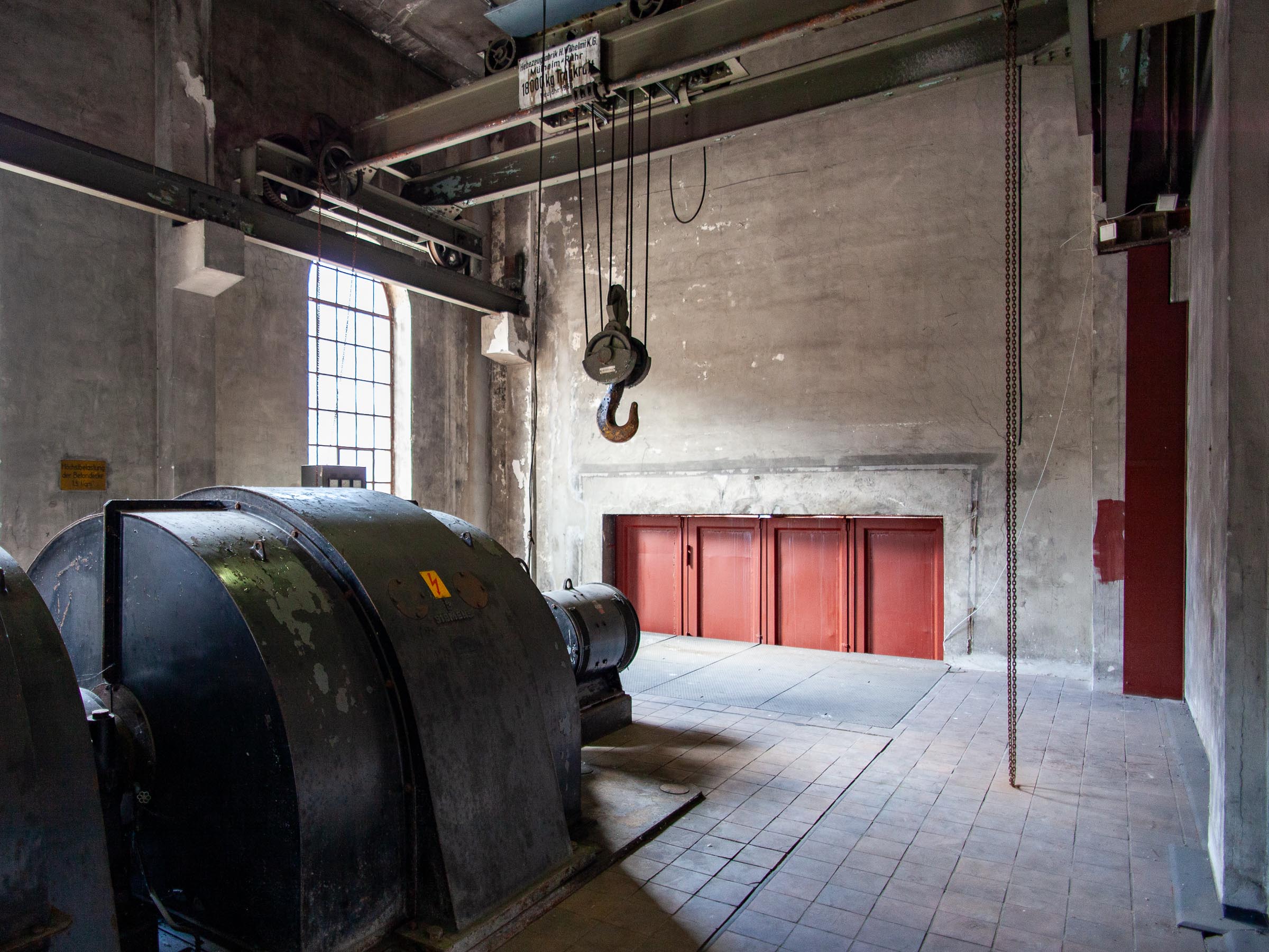 Vielleicht ist es auch gerade deshalb so faszinierend hier, weil ich eben nicht weiß, welchen Zweck all die Strukturen einst hatten. Ein riesiger Generator (oder ein Motor? Ein irgendwas, in dem sich vermutlich etwas dreht...) und ein überdimensionaler Haken in einer Halle. Wozu diente das?