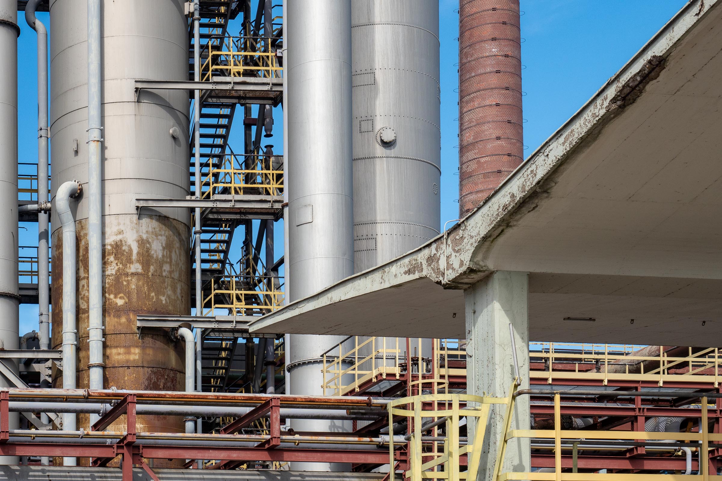 Die Zeche Zollverein in Essen begeistert mich seit Jahren. Immer wieder schaue ich hier vorbei. Für jemanden wie mich, der sich mit Kokereien und Stalwerken nicht auskennt, stellen die rostigen Gebilde abstrakte künstlerische Formen dar, die nur darauf warten, in Szene gesetzt zu werden.