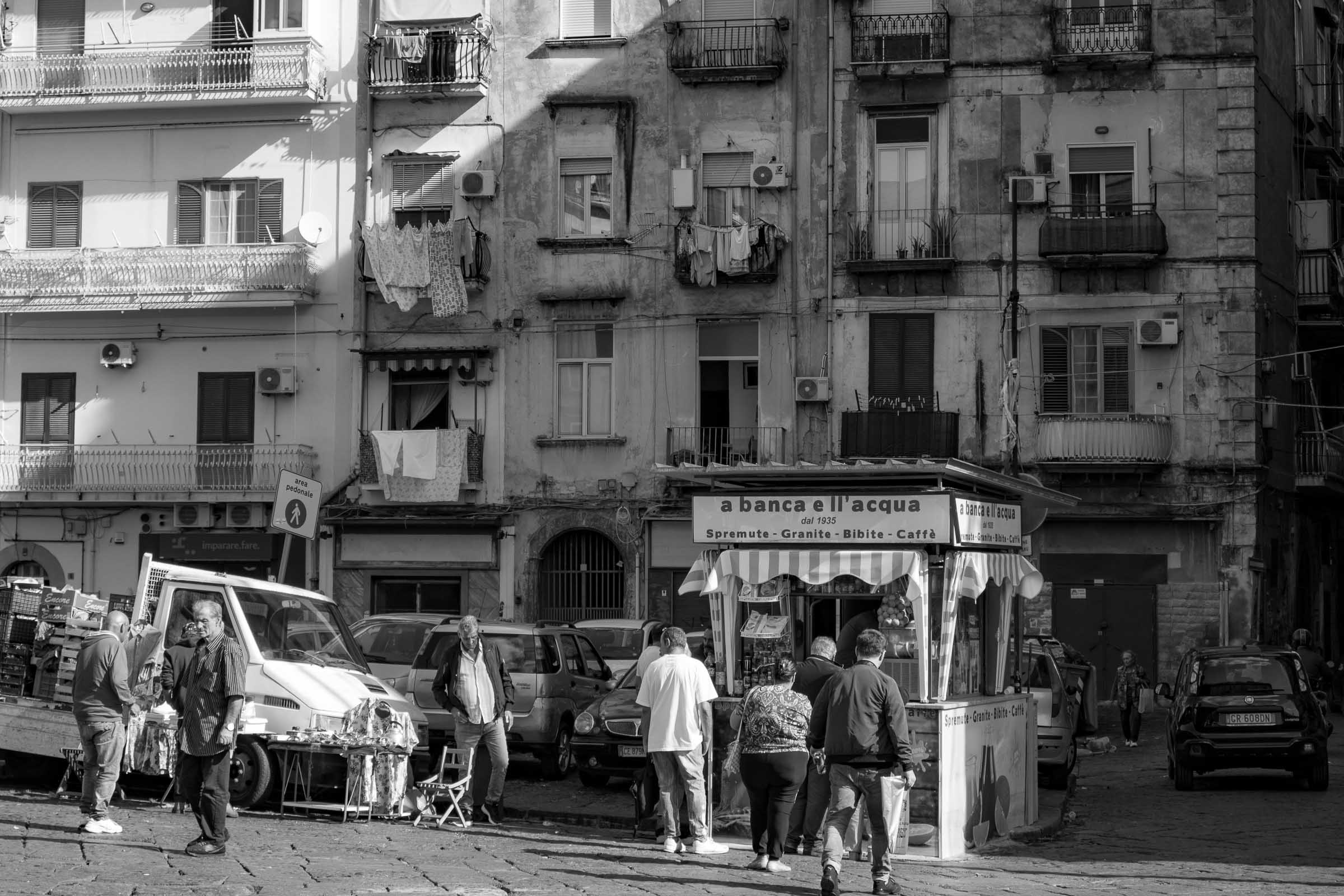For the photographic eye, Naples offers rich nutrition. Narrow alleys over which the typical clotheslines hang. Streets and pedestrian zones are full of people. In many places there are market stalls and restaurants. Even the car traffic gives a great picture in some places. Nothing is polished to a high gloss. The city really has charm.
